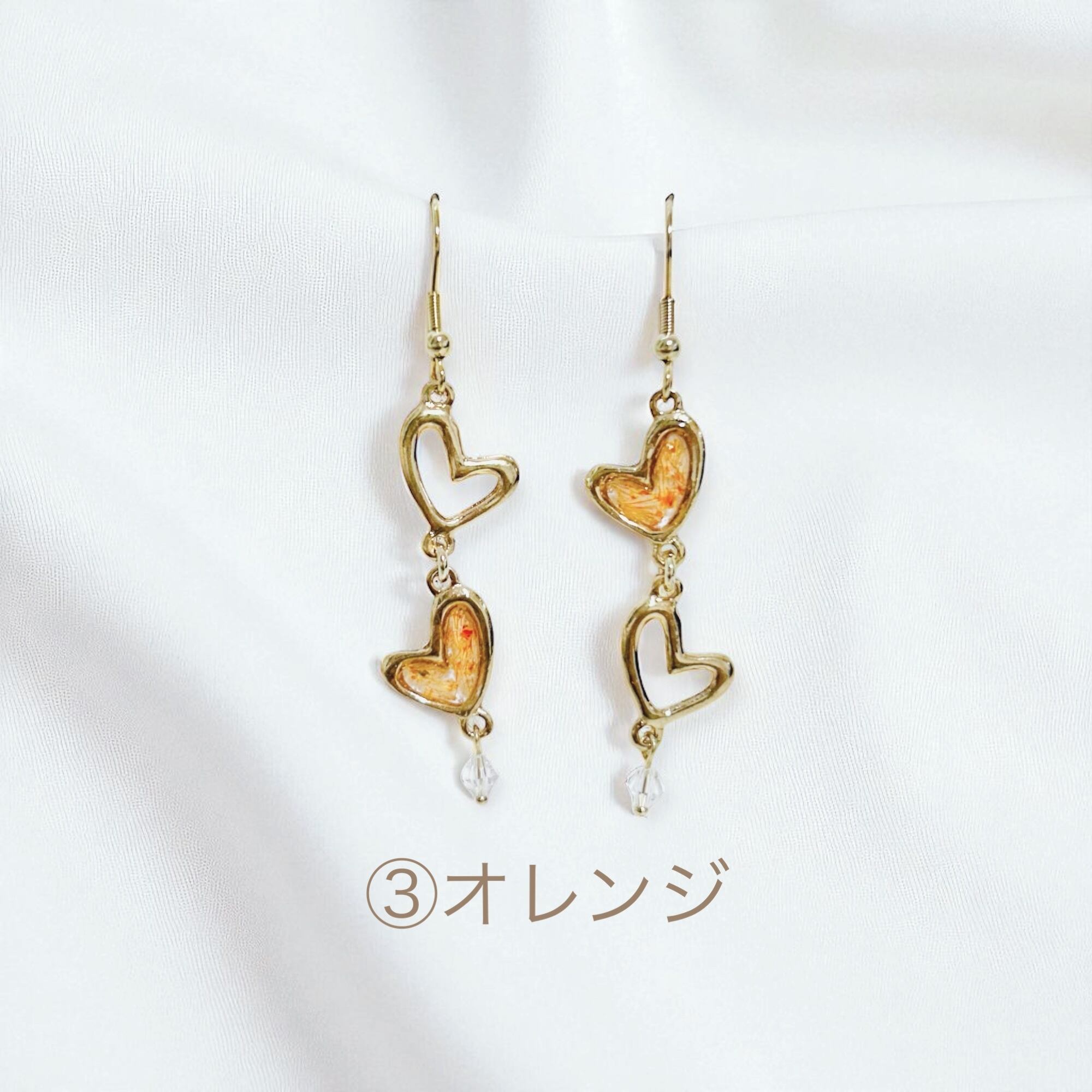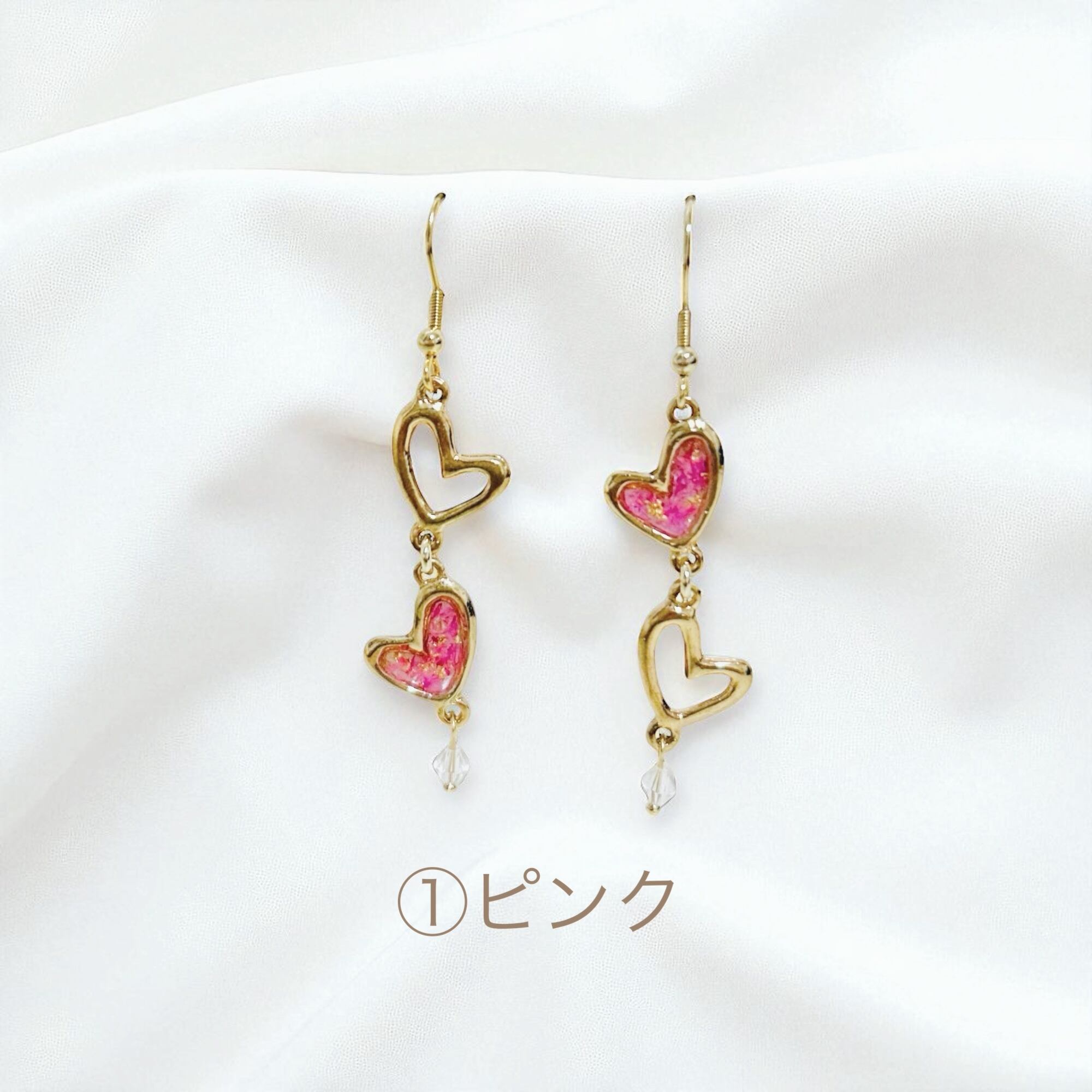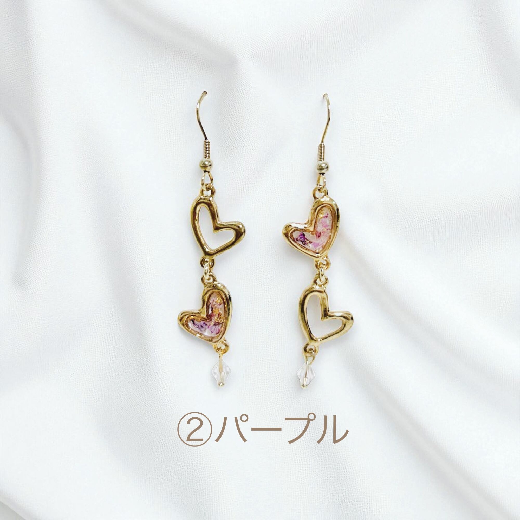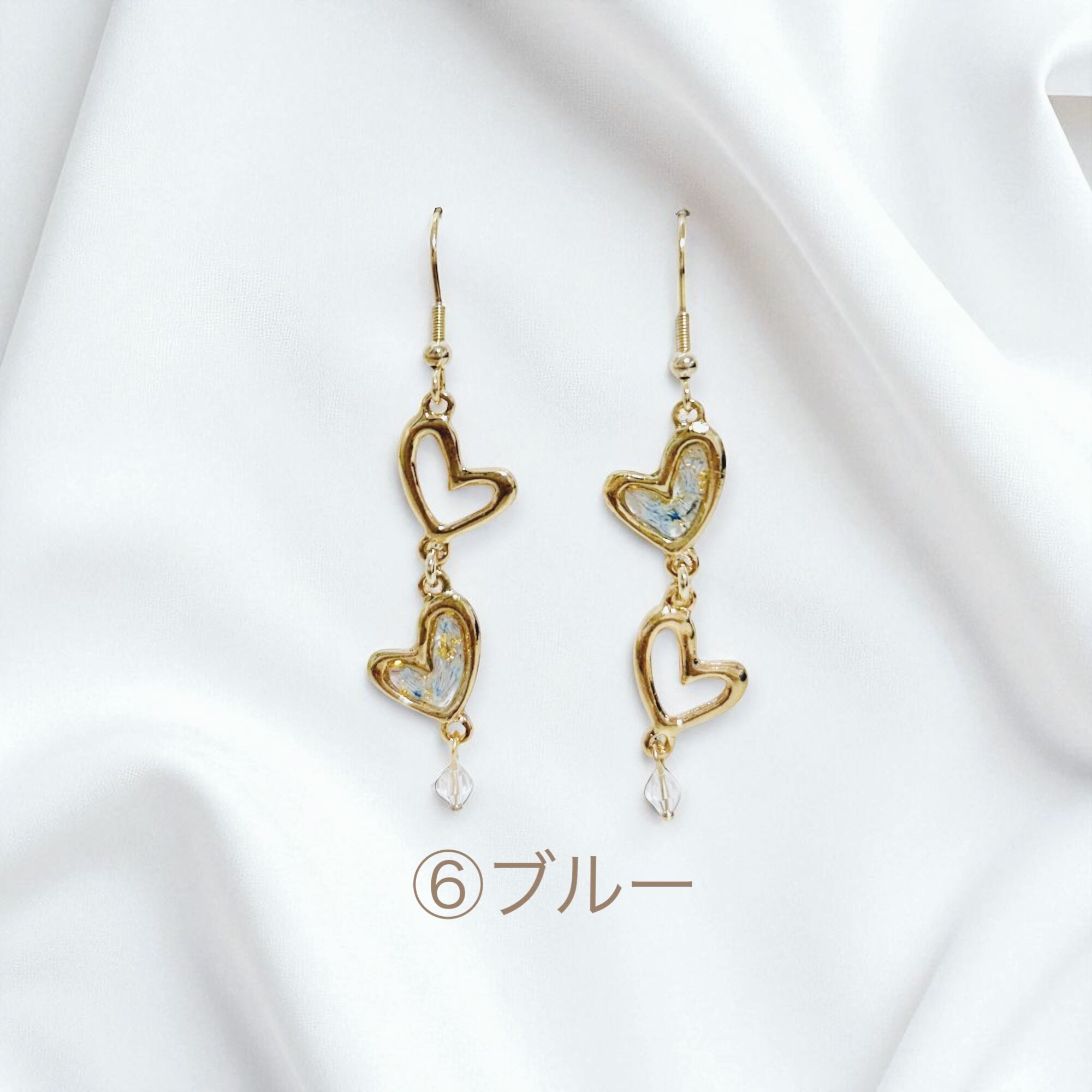 可愛いハートの中にドライフラワーかすみそうが、さりげなく揺れるデザインは、女性らしさを引き立てるアクセサリーです!